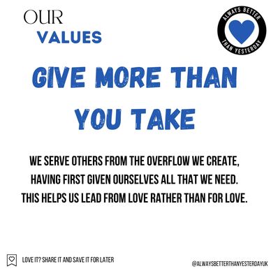 If our values were single words, they would be love, service, faith, optimism, connection, positivity, potential, legacy, growth and devotion.
